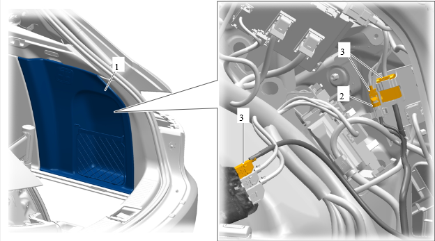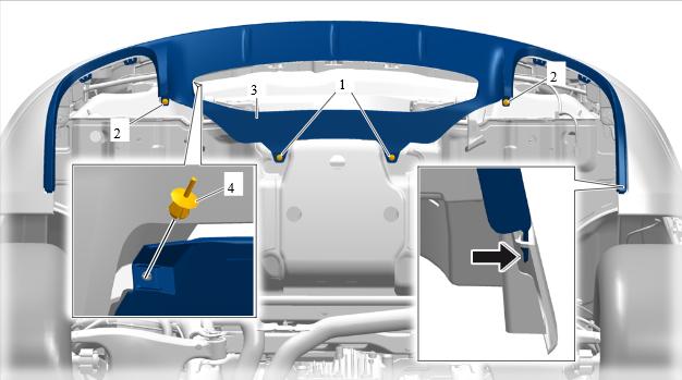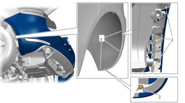 1. Выкрутить крепежные винты -1- бампера слева и справа.