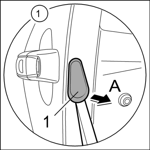 2.1. Расклипсовать колпачок -1- снизу при помощи пластмассового клина -стрелка A- и снять вниз -стрелка B- .