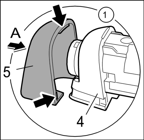 1.1. Крышку -5- на личинке замка -4- прижать так -стрелка A- , чтобы фиксаторы -стрелки- защелкнулись.