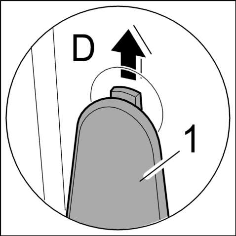 3.1. Крышку -1- вставить сверху -стрелка D- и заклипсовать -стрелка E- .
