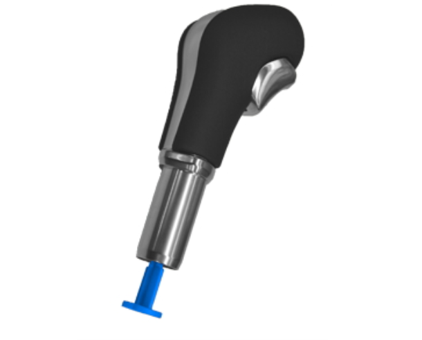 2. Вставить транспортировочный блокиратор в рукоятку селектора вертикально по отношению к кнопке до его фиксации.