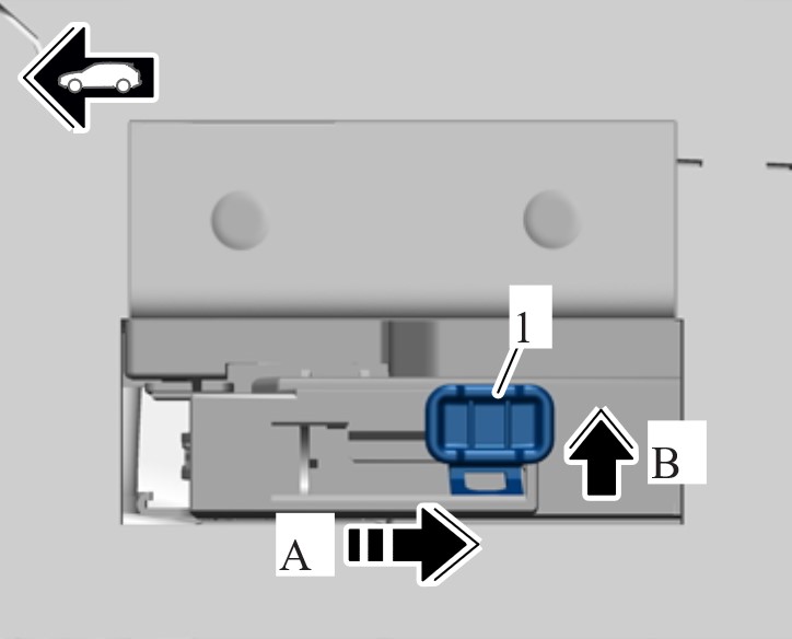 1. Переместить сиденье водителя до упора назад. Открыть крышку -1--стрелка-.