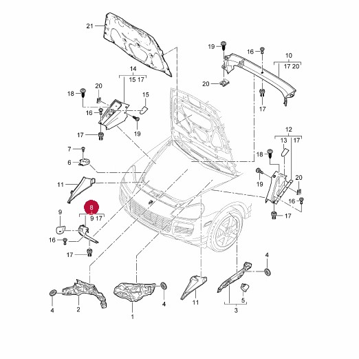 9PA1 производство 2007>>2010 (L) Подкапотный пластик 957