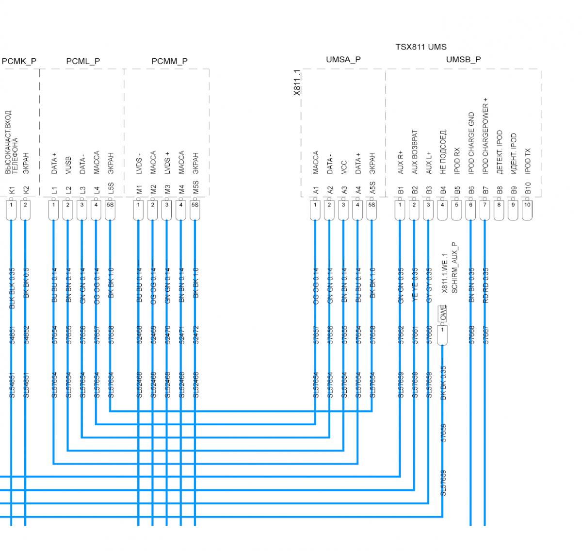 Еще хочу прокинуть USB в бардачок. Нужна распиновка разъема PCM 3.1. По схеме которую нашел не понятно..