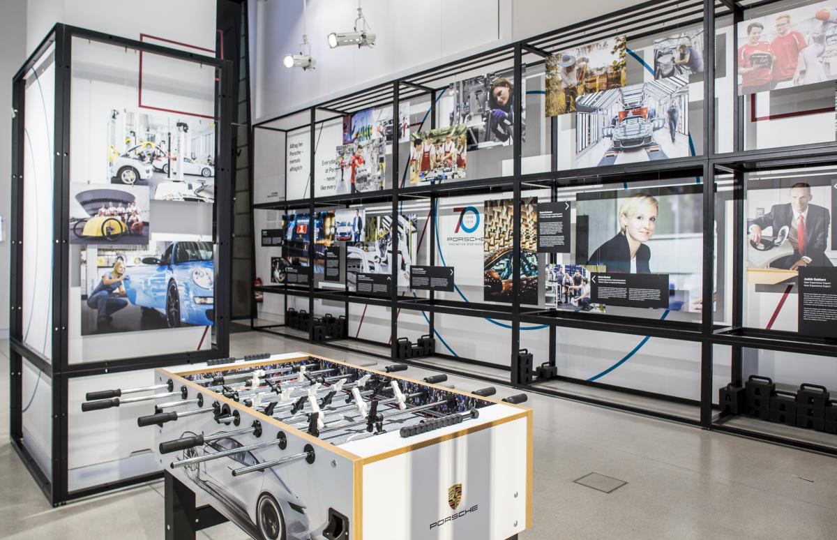 «Спорткары сегодня» представлены на примере Panamera Turbo S E- Hybrid Sport Turismo, который в качестве топ-модели демонстрирует возможности альтернативной технологии привода с использованием виртуальной реальности. Раздел «Спорткары во всем мире» показывает, как клиенты и приверженцы Porsche по всему свету отличают и чествуют бренд. И, наконец, раздел «70 лет страсти» посвящен сотрудникам компании, которые сделали Porsche великой маркой. Фильмы, книги и интерактивные диалоговые возможности дополняют концепцию выставки во всех разделах.