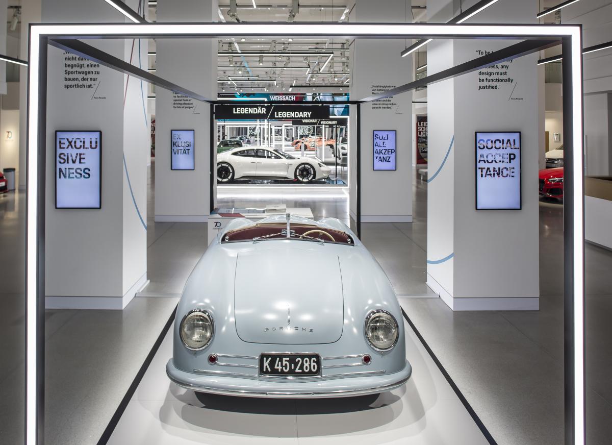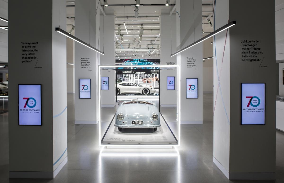 Штуттгарт. 8 июня 1948 года первый прототип Porsche с номером шасси 356-001 получил допуск к эксплуатации. Эта дата считается днем рождения марки Porsche. Во вторник, 20 марта 2018 года, в Берлине Porsche представляет первую специальную выставку к юбилейному году «70 лет спортивным автомобилям Porsche». До 31 мая 2018 года выставку можно бесплатно посетить в выставочном центре DRIVE. Volkswagen Group Forum (Унтер-ден-Линден).