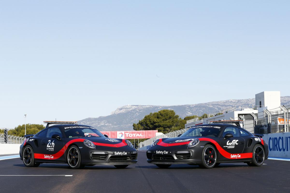 Штуттгарт. Автомобилем безопасности чемпионата мира по гонкам на выносливость среди спортивных автомобилей FIA WEC теперь является Porsche 911 Turbo. Полноприводный «девятьсот одиннадцатый» мощностью 540 л.с. (397 кВт) разгоняется с места до 100 км/ч за 3,0 секунды. Технически автомобиль безопасности в основном соответствует серийной версии. Лишь некоторое специфическое для гонок переоборудование: например, добавлены световые сигналы на крыше и радио для связи с руководством гонки, тормоза и ходовая часть оптимизированы трассы. Автомобиль окрашен в черный матовый цвет с глянцевыми красными полосами аналогично дизайну герба Porsche гоночных болидов заводской команды.