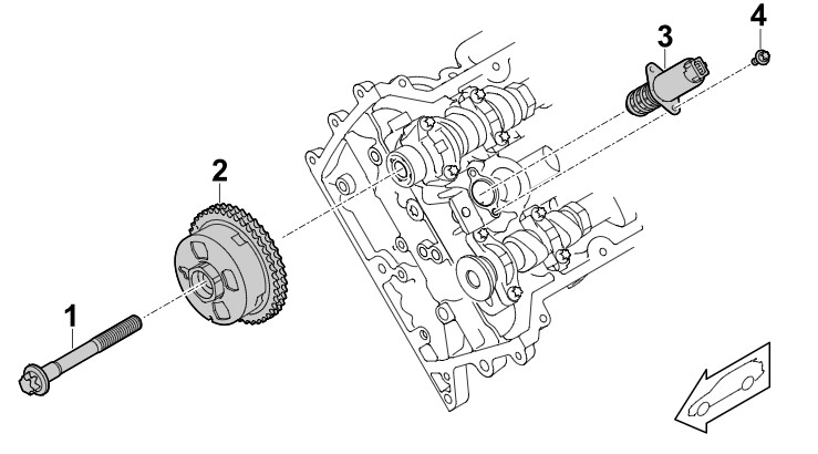 Алюминиевый винт M6 x 20; датчик Холла (датчик фаз газораспределения); алюминиевые винты всегда подлежат замене → Предварительная затяжка: 4 Nm и → Окончательная затяжка: 90°