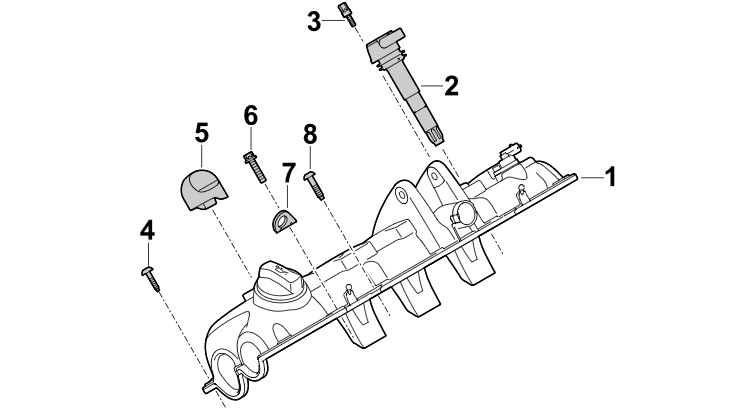 Катушки зажигания и клапанная крышка ряда цилиндров 5-8