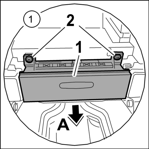 1. Установить пепельницу спереди -1- , -стрелка A- .