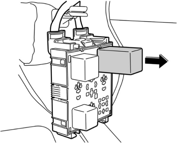2 Вынуть блок управления из держателя реле -стрелка-.