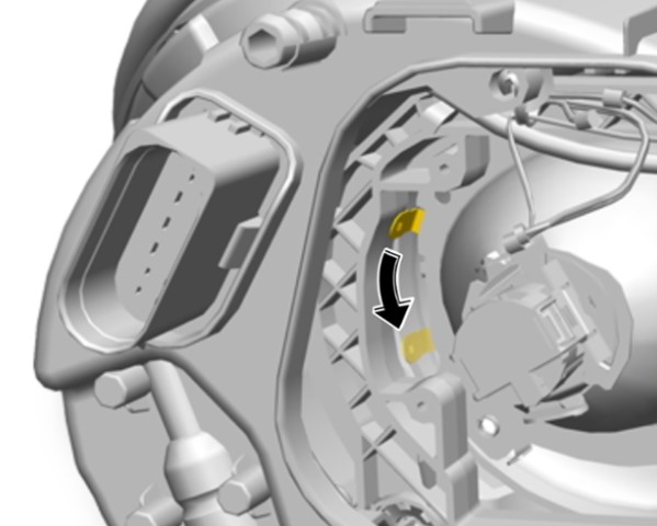 3 Закрыть крышку на фаре. Обе проушины должны быть полностью зафиксированы.