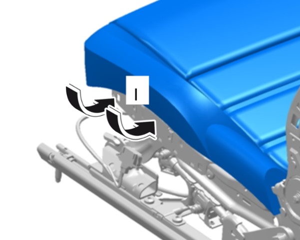 1 Полностью выдвинуть элемент удлинения поверхности подушки сиденья.