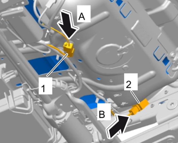1.2 Разблокировать электрический разъем обогрева элемента удлинения поверхности подушки сиденья -2--b- и отсоединить его -B-.