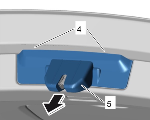 2.9 Разблокировать зажимы -4- накладки замка -5- с помощью пластикового клина и снять в направлении стрелки.