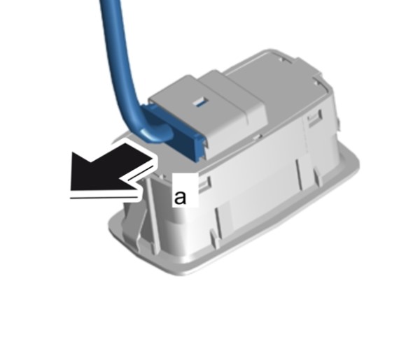 2.5 Разблокировать электрический разъем плафонов освещения багажного отсека -2- сбоку на разъеме -a- и отсоединить разъем -B-.