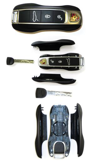 При необходимости замены элемента питания в ключе автомобиля на приборной панели появляется предупреждение. Герб Porsche больше не