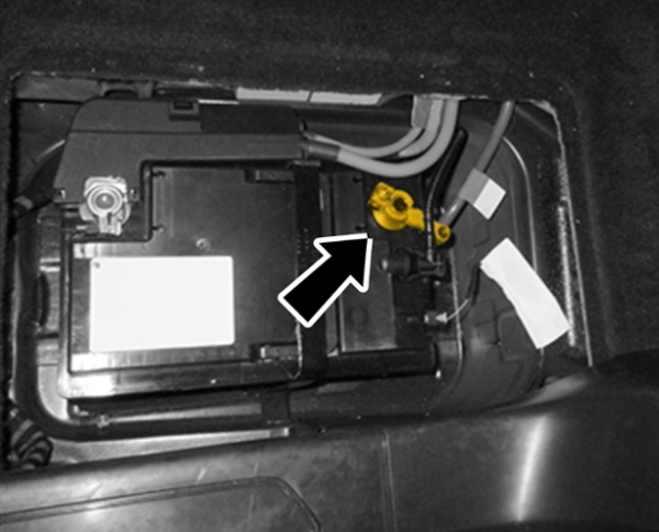 1 Снять крышку АКБ в пространстве для ног со стороны переднего пассажира.