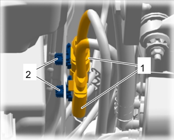 2 Отсоединить электрический разъем -1- от крепления -2-.