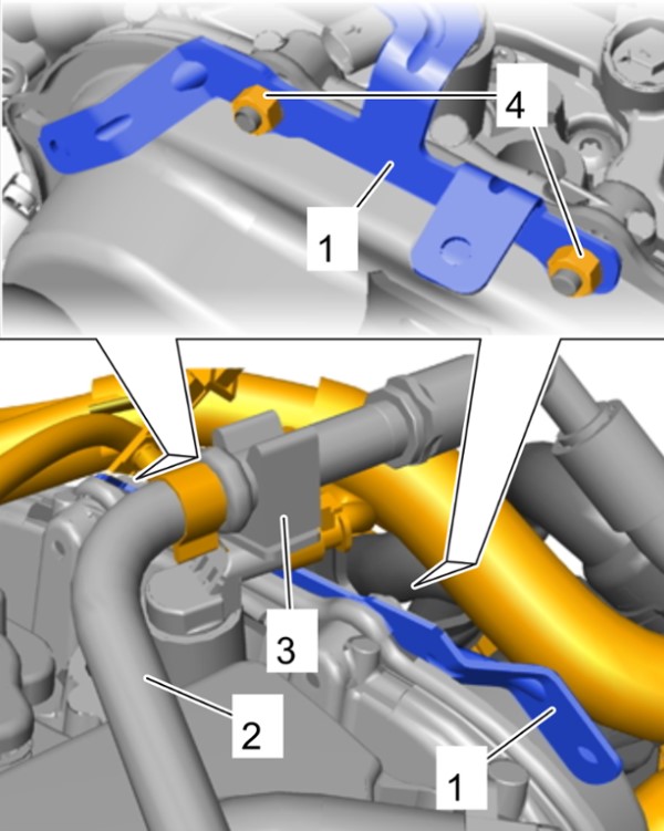 3.1  Отщелкнуть трубопровод -2- из держателя -3-.