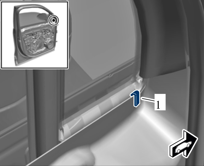 2. Приклеить клейкую подушечку с микропористой резиной 1 в области стойки B.