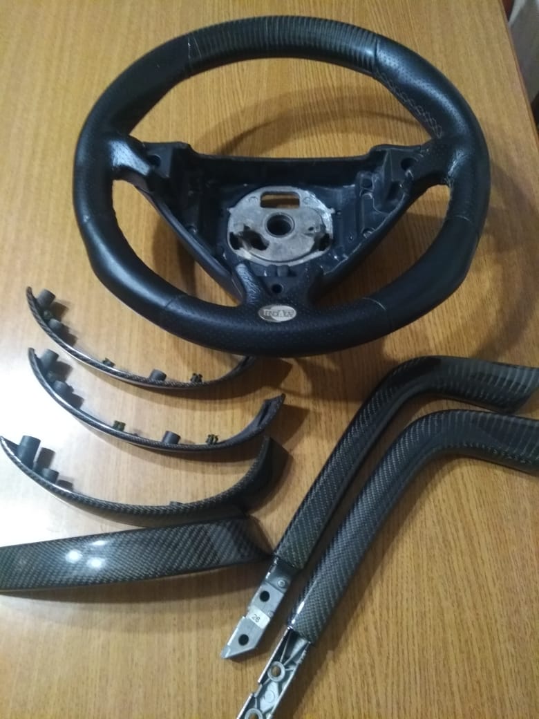 Руль с карбоновой вставкой. Кожа в хорошем состоянии, без потёртостей.