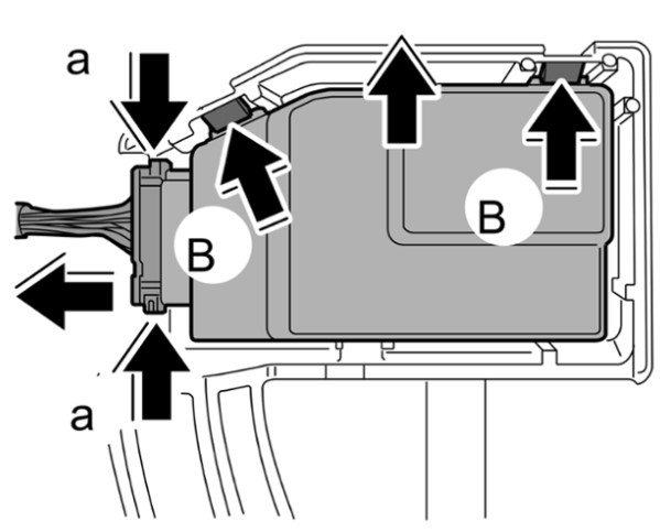 Разблокировать разъем зонда электромагнитного поля -стрелки a- и отсоединить.