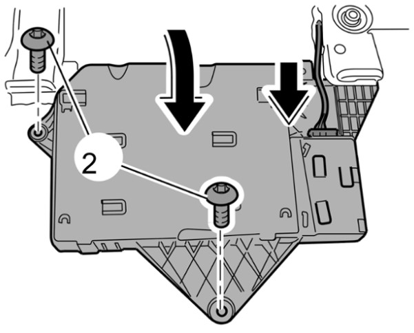 Повернуть держатель зонда электромагн. поля вперед и двумя крепежными винтами -2- прикрутить момент затяжки 6 Nm .