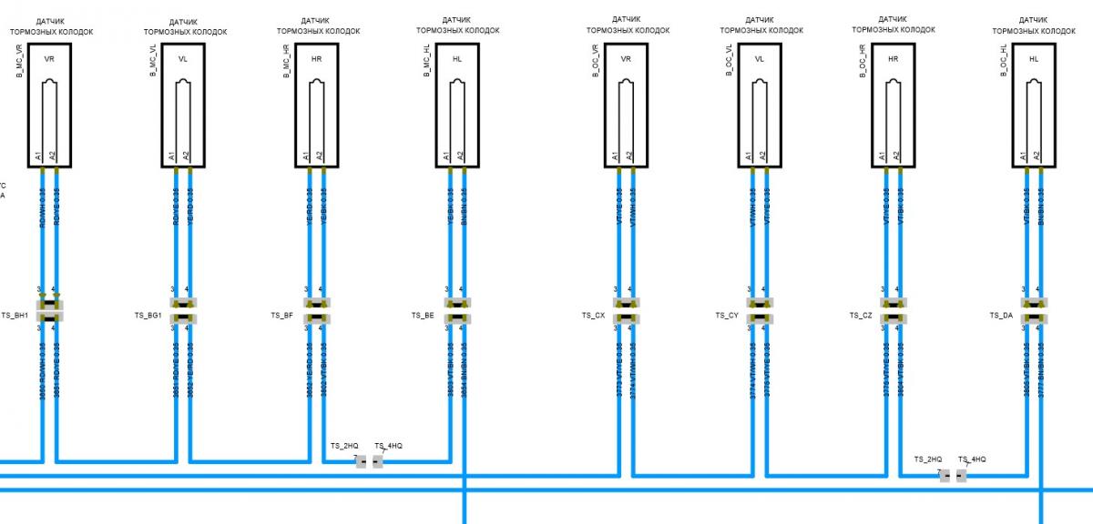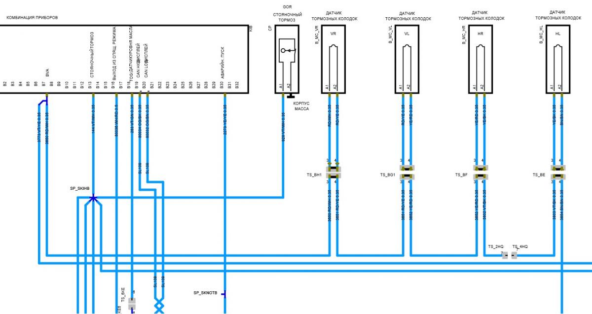 Схема немного не такая(смотрел по туарегу в Эльзе того же года), ну да пофигу, разобрался, все как всегда стандартно-сервисмены, кто менял колодки не вставили до конца один разъем, как итог-попала вода и он окислился внутри-почищено, помазано-работает. Звонил от кузова к панели каждое колесо, кузов-левое заднее-правое заднее-левое переднее-правое переднее-панель,на левом переднем перестало звониться-дальше все просто, соединений всего два на каждое колесо-одно сам датчик, второе под подкрылком, были почищены оба на всякий случай и проверены остальные. Спасибо за помощь.