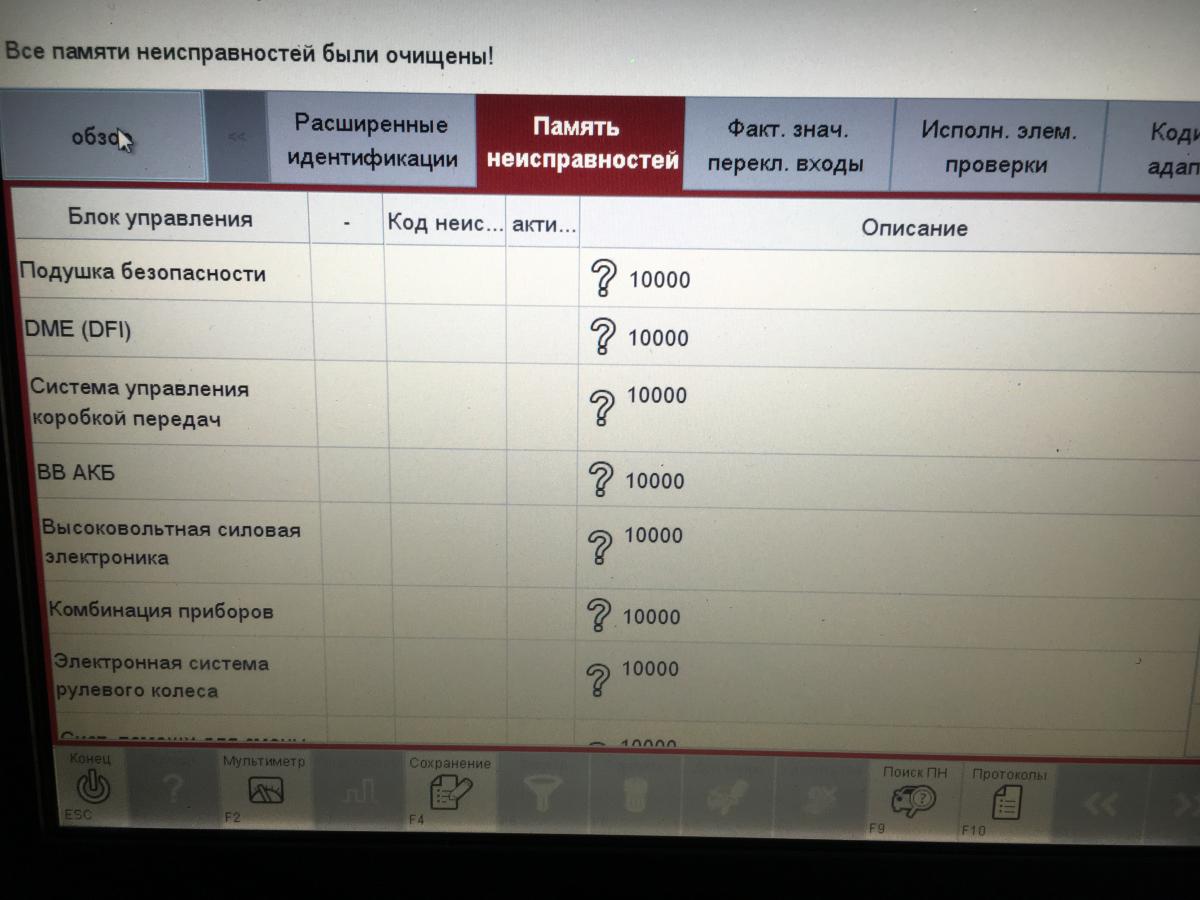 Ошибку удалось стереть, программа пишет что все ошибки стёрты, но на экране по всем блокам ошибка с кодом 10000 или 10020, которая обновляется в 10000.