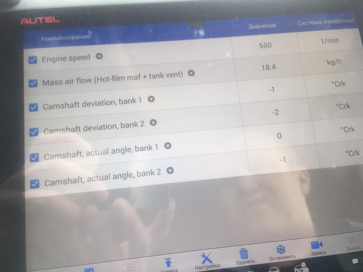 При отключении разъемов эл. магнитных клапанов управления фазовращателей какая реакция?