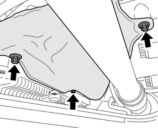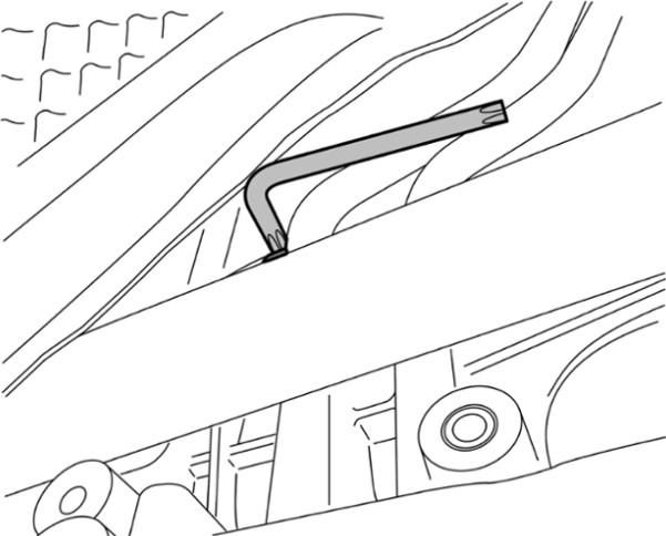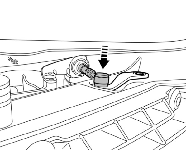 6 Задвинуть крепежный элемент троса блокировки в контропору на коробке передач в направлении движения.