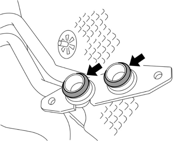 14 Заменить уплотнительные кольца на концах трубопровода ATF.