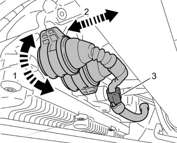 3 Отсоединить разъем на коробке передач путем поворота на 1/4 оборота влево.
