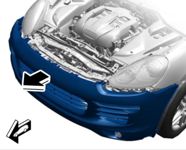 3 Затянуть винты крепления верхней части облицовки передней части кузова к передней крепежной планке посередине. Момент затяжки 8 Nm