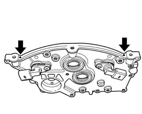 1 Перед выполнением монтажа крышки ГБЦ нанести герметик 000 043 207 54 (по состоянию на 02/09) согласно рисунку. Нанесение герметика на крышку кожуха ГРМ сверху.