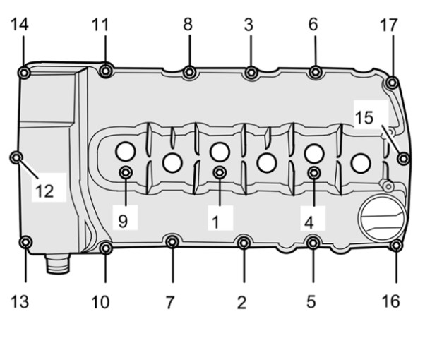 Последовательная затяжка крепежных болтов крышки ГБЦ осуществляется равномерно по часовой стрелке!