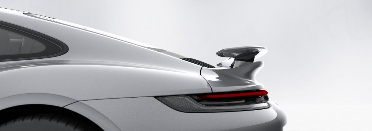 В конструкции заднего антикрыла широко используются облегченные материалы. Этот эффектный отличительный признак моделей Turbo весит на 440 граммов меньше, чем у предшественника, но при этом его рабочая поверхность возросла на восемь процентов. Основу антикрыла образует сердечник из вспененного материала с коваными вставками. Конструкция состоит из верхней части с двумя слоями пластмассы с углеволоконным усилением (двухосевая карбоновая ткань) и нижней части с одним слоем пластмассы со стекловолоконным усилением (трехосевой стеклопластик). Электропривод обеспечивает выдвижение и наклон антикрыла и действует в зависимости от скорости и выбранного режима движения.
