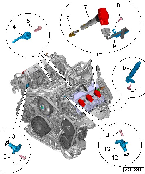 Датчик детонации 1 -G61- (справа), датчик детонации 2 -G66- (слева)