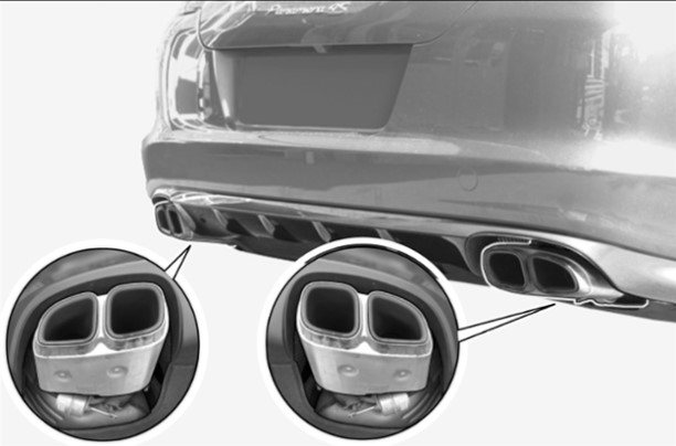 Спортивная система выпуска ОГ может быть активирована через новую консоль переключателей с помощью дополнительной клавиши “Сдвоенная выпускная труба” (область центральной консоли).