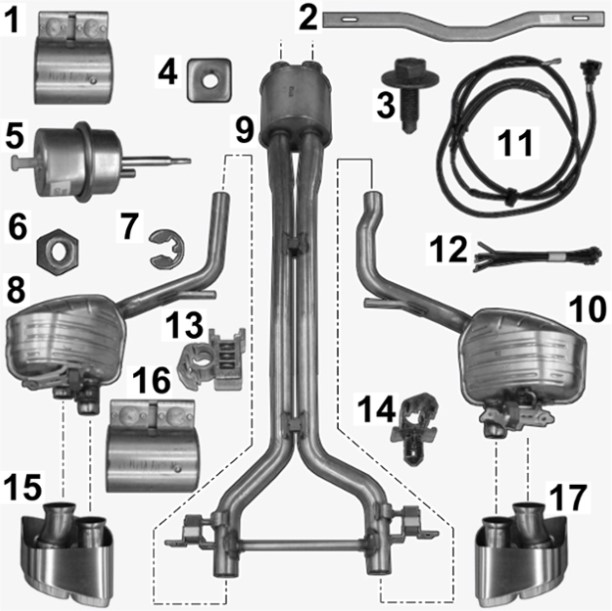 970.111.682.50 1 шт Спортивная выпускная труба, правая, вкл. шаровой хомут -17-
