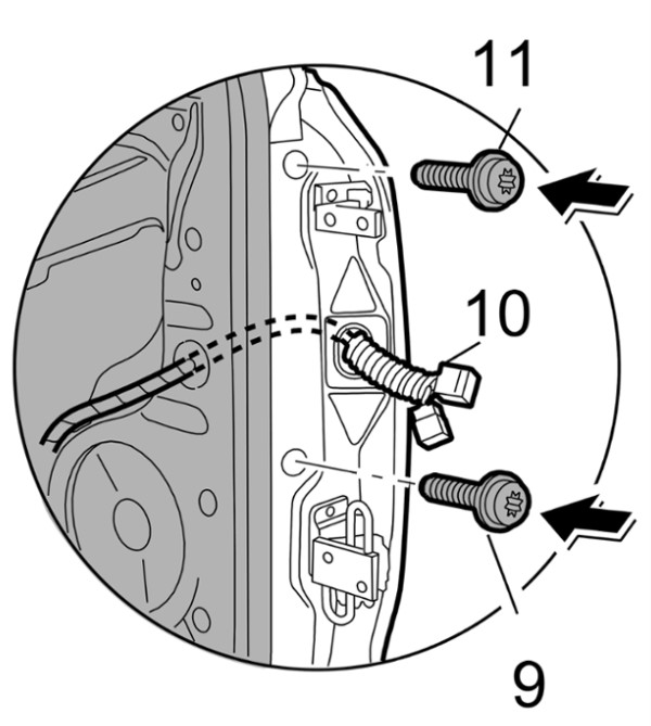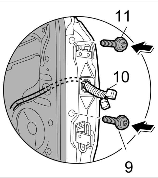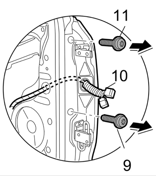 Вывернуть крепежные винты рамы двери-8, 9- и -11-.