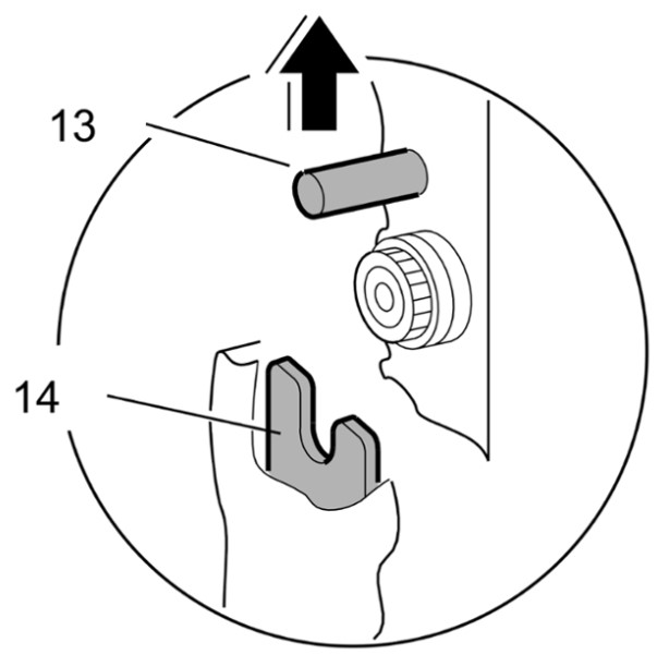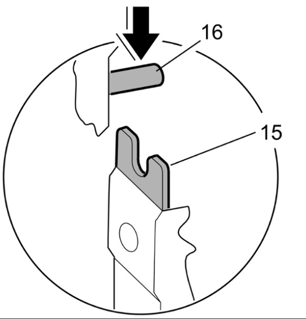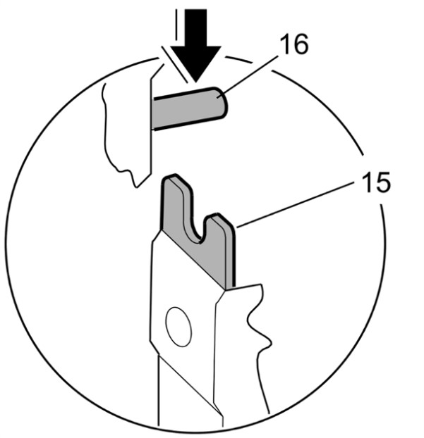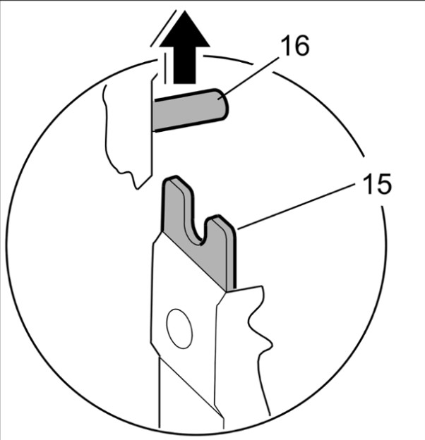 Равномерно приподнимать раму двери -12- спереди и сзади, пока направляющие пальцы -13- и -16- полностью не выйдут из опорных вилок -14- и -15-.