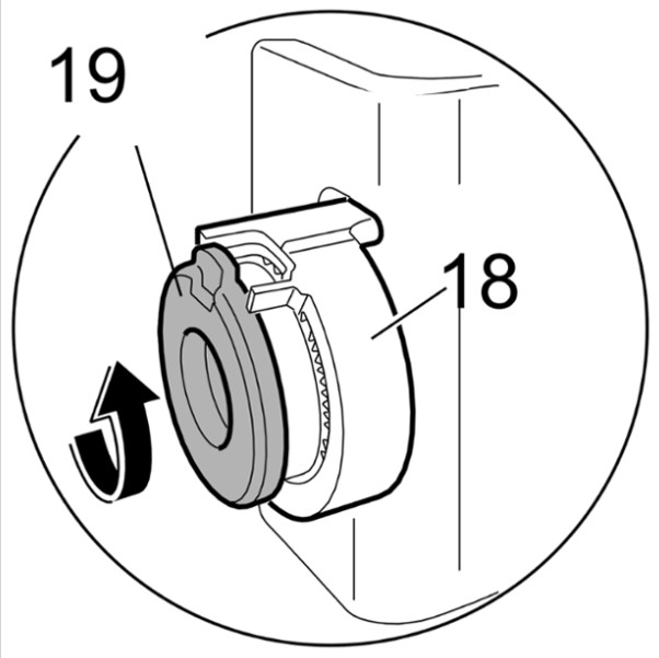 Три регулируемых крепежных элемента на крепежной раме двери (-стрелка A, B, C- ) установить в базовое положение. Резьбовой элемент -19- полностью вкрутить в базовый элемент -18- .