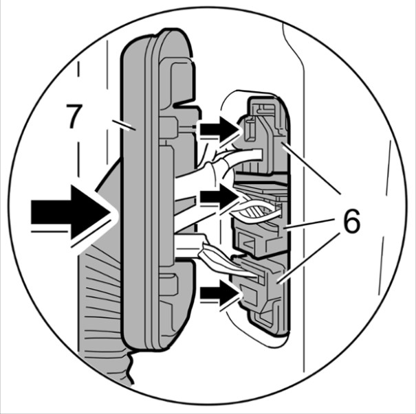 Выдавить резиновую втулку наружу -C- и извлечь кабель наружу через отверстие.