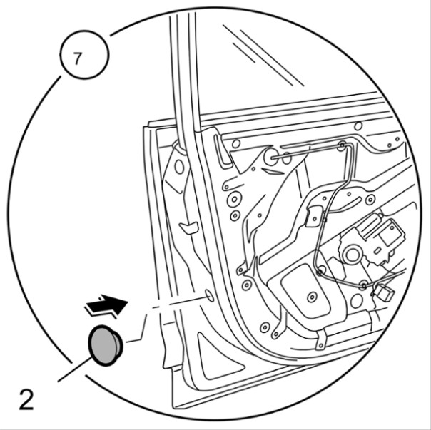 Для снятия крепежной рамы передней двери поднять боковое стекло, чтобы обеспечить лучший доступ к проводке двери.