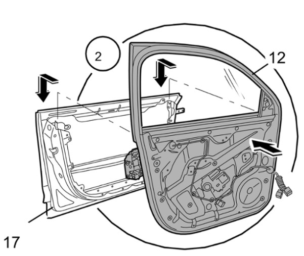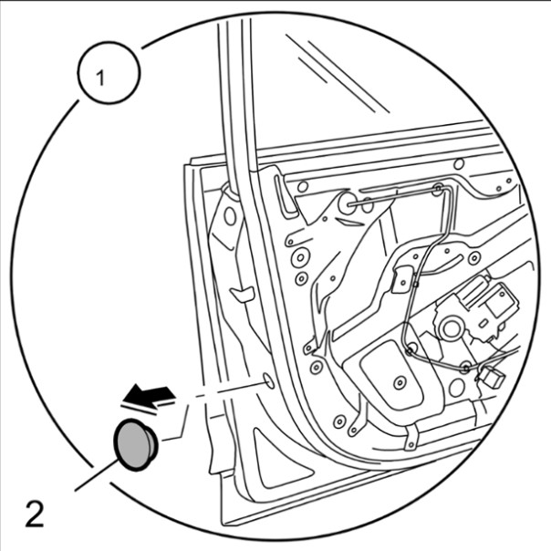 Вставить резиновую втулку -7- между дверью и стойкой A.