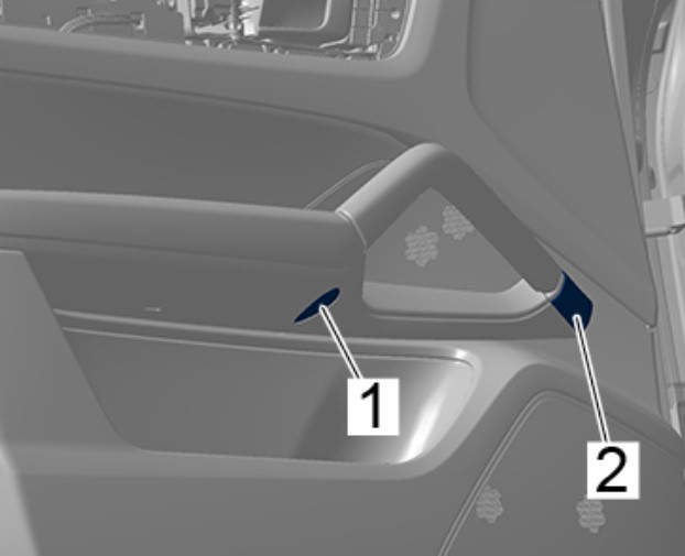1 Отсоединить накладку -1- и накладку -2- с помощью пластикового клина.
