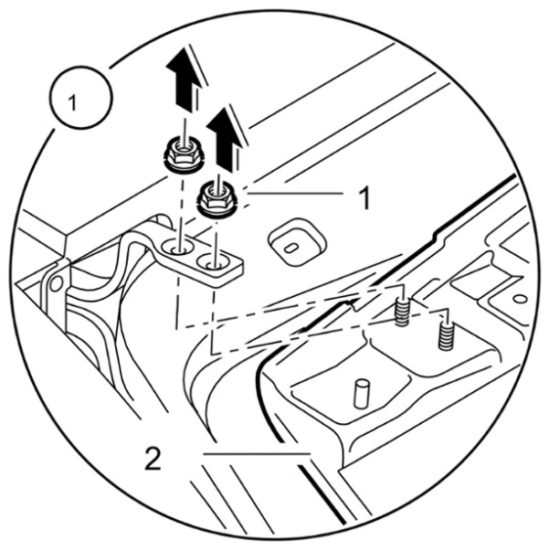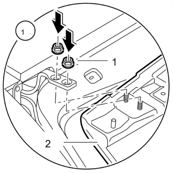 Затянуть крепежные гайки -1- с моментом Момент затяжки 23 Nm +/- 2 Nm.