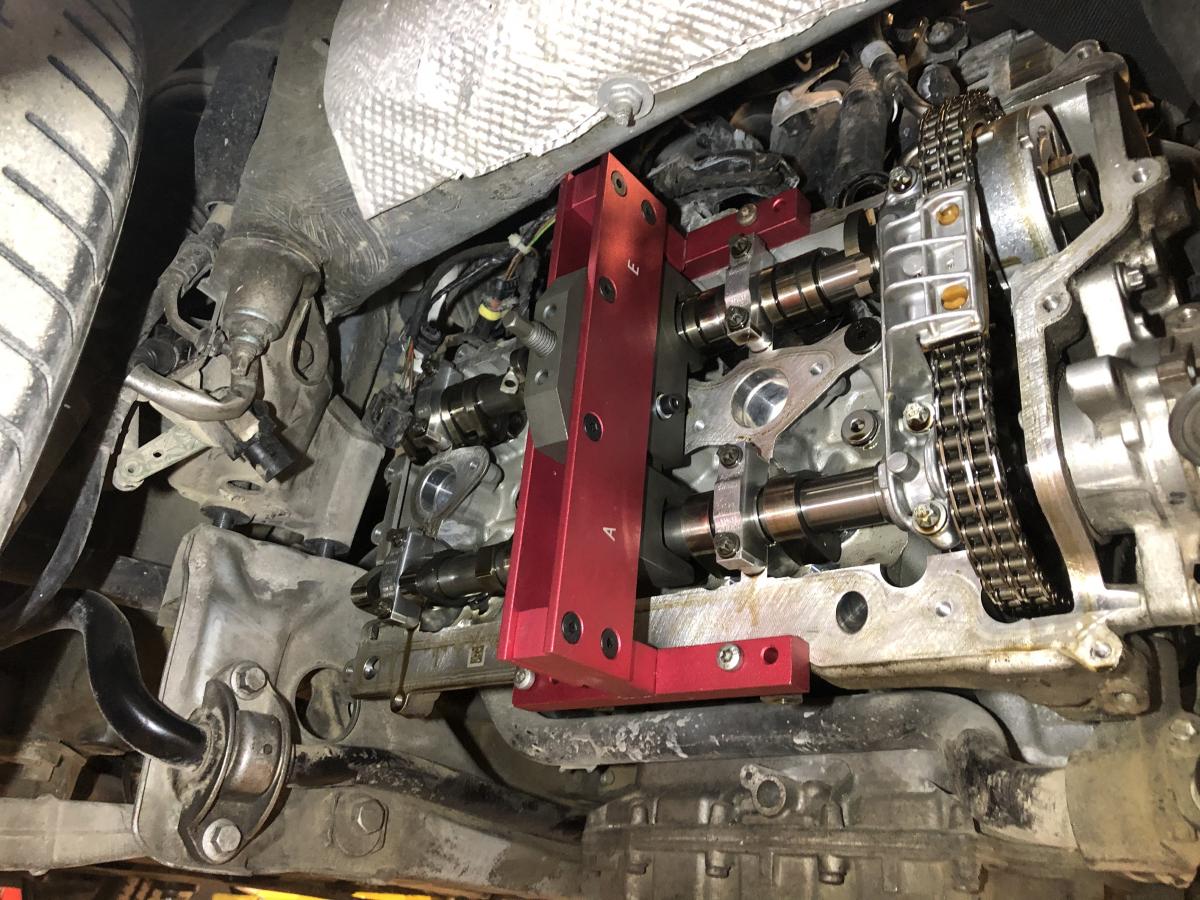 В моей инструкции для 2016г. был упущен момент где нужно делать полный оборот коленвала, что бы поставить фиксатор распредвалов ( проверить положение) на другой стороне цилиндров. ( из-за конусной формы отливов на валах для фиксатора )